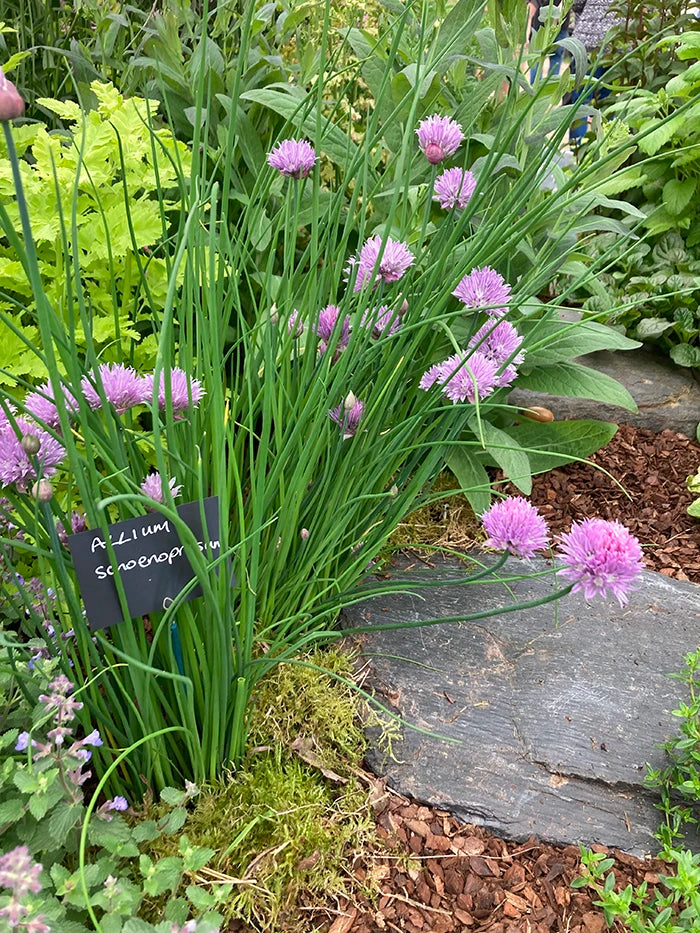 Chives have edible, cylindrical, hollow green leaves and pinkish purple edible flowers. The bulbs will multiply quite quickly to form large clumps, which should be divided every 3 to 4 years. Both the stems and flowers of Chives can be used to add onion flavour to salads, soups and more.