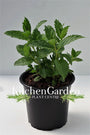 Peppermint can be used in fruit salads, green salads, vegetables, yogurts. It has mauve flowers. Medicinally used to aid digestion.
