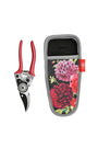 A lightweight RHS-endorsed pruner can cut easily diameters of 1.5cm, with its fully hardened and tempered, high carbon steel blade for lasting sharpness and a bypass cutting action. A soft comfort grip covers the lightweight alloy handles. The neoprene holster features the British Bloom Dahlia and Poenie design and can be worn on a belt for ease of access. The holster features 19th century botanical illustrations and watercolours from the 1630s from the RHS Lindley Collections of historic botanic art. The pruners are beautifully presented in a printed gift box bound with ribbon, making a gorgeous gift. Pruner length: 17cm. Weight: 160g. Handles: alloy with comfort grip. High carbon steel blade. Holster length: 19cm. Fabric: neoprene. GIft box: 23.5cm x 16.5cm x 2.5cm. Acetate cover.