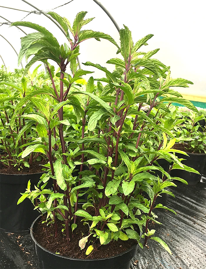 Thai Mint is known as Bae Saranae in Thailand and is frequently used in Thai cooking. Also great in salads. It has dark green leaves and striking red stems. Prefers sun/part shade in moist nutrient rich soil.