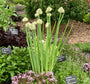 Welsh Onion is known for its large creamy globe shaped white flowers on thick onion like stems. Small bulb with small greenish-white flowers. Taste is similar to white onion, but does not form a typical onion bulb. Foliage and flowers can be eaten for adding onion flavour to dishes. Despite the name the Welsh Onion is in fact a native of Asia. Use stems in salads or in Jamaican or Asian cooking.